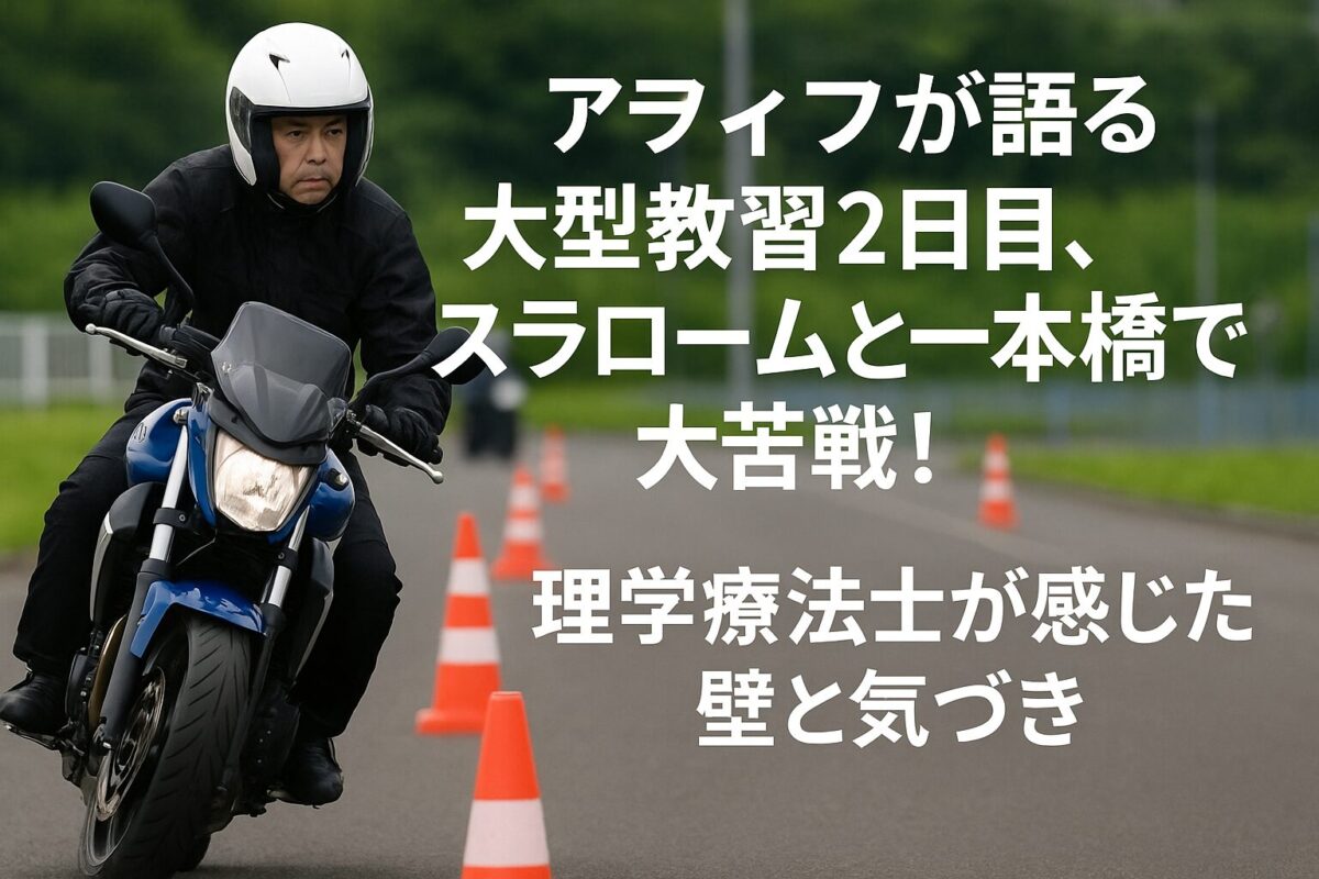 アラフィフが語る|大型教習2日目、スラロームと一本橋で大苦戦!理学療法士が感じた壁と気づき